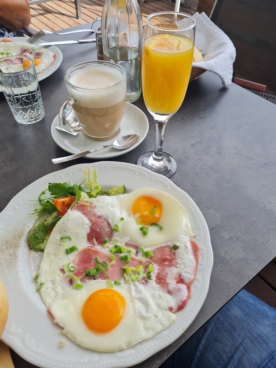 Frühstück war sehr gut, Kaffee oder Tee ist inkludiert (für eine Latte muss man ein bisschen was drauf zahlen) und orange juice oder Prosecco bekommt man mit dem Jana Frühstück auch dazu. Ich würde auf jeden Fall wieder einmal hinkommen.